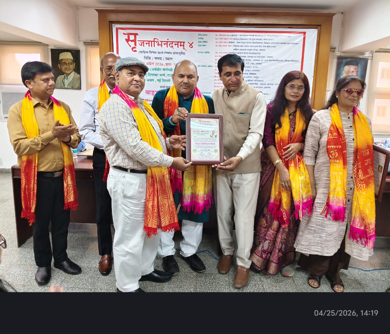 मुंबई। प्रेस क्लब ऑफ वर्किंग जर्नलिस्ट्स पंजीकृत के राष्ट्रीय अध्यक्ष डॉक्टर सैयद खालिद कैस एडवोकेट को गत दिनों साहित्य सिनेमा कला रंगमंच योगायुर्वेद अलंकरण उत्सव 2026 सृजनाभिनंदनम् 4, हिंदी भवन (धर्मवीर संगोष्ठी कक्ष), 11 विष्णु दिगम्बर मार्ग, राउज एवेन्यू निकट बाल भवन, नई दिल्ली द्वारा भाषा, साहित्य, कला, संस्कृति के सृजनात्मक संवर्धन में सतत् स्तुल्य योगदान देकर राष्ट्र, समाज को संवेदना, चेतना और मूल्यबोध से समृद्ध कर अटूट प्रतिबद्धता के कृतज्ञता स्वरूप वाङ्गय वैशिष्टय वैभव सम्मान से अलंकृत किया गया। कार्यक्रम में साहित्य, सिनेमा, कला और रंगमंच से जुड़े कई गणमान्य लोग मौजूद रहे।